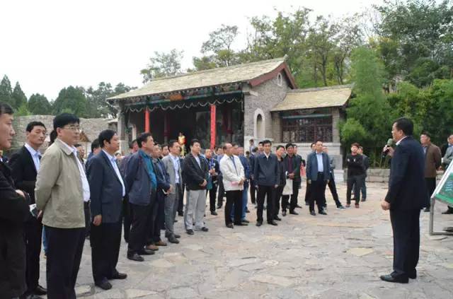 与会人员先后来到山亭区兴隆庄村、石嘴子村、葫芦套村、洪门村,学习山亭旅游扶贫开发模式,观摩乡村旅游建设成果。