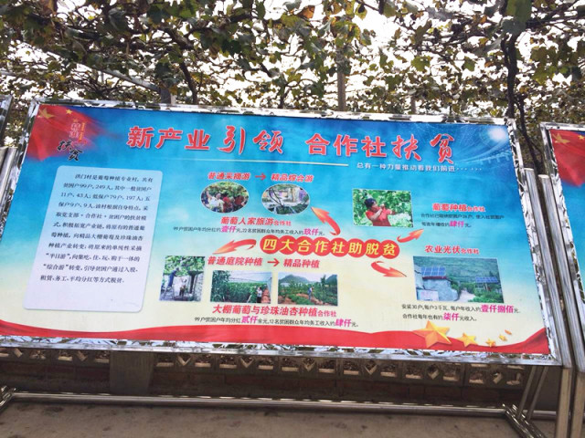 与会人员参观洪门村洪门村是山亭区北庄镇一个葡萄种植专业村,辖6个自然村,总人口1592人,现有贫困户99户249人。洪门村主要以旅游扶贫为主,兼顾实施合作社种植,光伏扶贫等,带动贫困户实现精准脱贫。