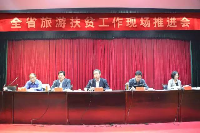 省旅游发展委员会副主任张明池到会并讲话张明池副主任对今年以来的乡村旅游及旅游扶贫工作进行了总结,并对下一步我省乡村旅游及旅游扶贫的重点工作进行了部署。张明池说,此次全省旅游扶贫工作现场会做到了五个“精准”,一是时间精准,二是现场会观摩地点精准,三是到会人员精准,四是会议主题精准,五是形式精准。采取现场观摩与会议发言的形式,让参会人员受益匪浅。张明池说,通过高度重视,强力推进,使全省旅游扶贫工作取得阶段性成果。一是突出规划引领,推进精准实施。 二是加大资金投入,推动项目落地。三是整合政策资源,合力扶贫攻坚。四是创新扶贫模式,推动脱贫增收。张明池表示,下一步,要超前谋划、狠抓落实,全面完成旅游扶贫攻坚任务。要认真总结今年旅游扶贫取得的工作成效、梳理明年工作任务、做到心中有数。要提高效率,增强效果,严格资金监管,认真做好旅游扶贫工作。要积极探索和实践,巩固建立长效机制,全力做好2017年旅游扶贫工作。
